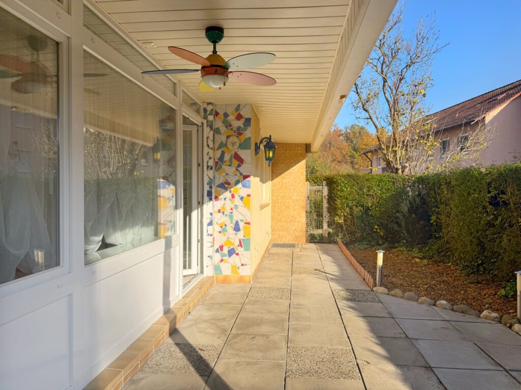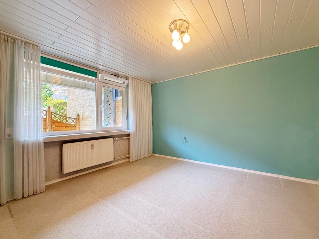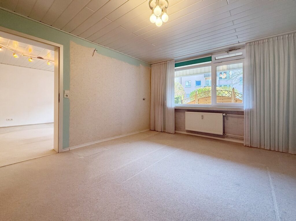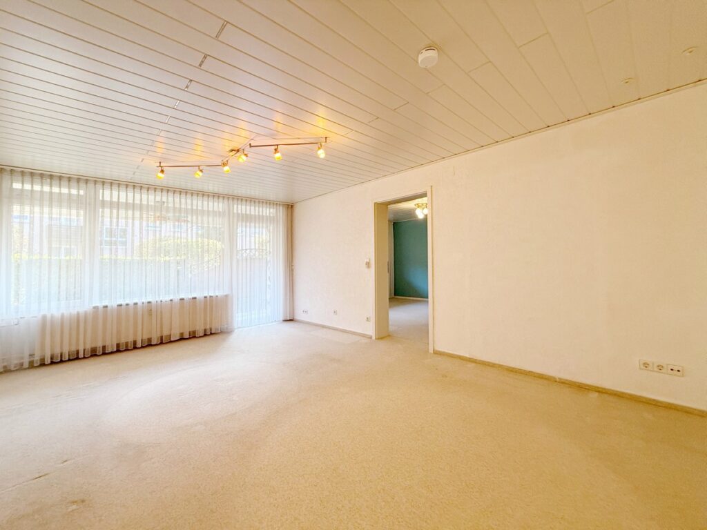Direkt nebenan befindet sich das Wohnzimmer, von hier aus haben Sie ebenfalls Zugang zur überdachten Terrasse, die einen geschützten Außenbereich bietet und sich wunderbar zum Entspannen eignet. Große doppelverglaste Kunststofffenster mit öffenbaren Oberlichtern, lassen reichlich Tageslicht in die Wohnung und schaffen eine helle und freundliche Atmosphäre.