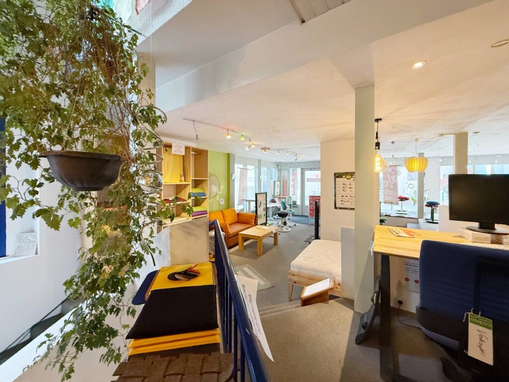 Die bezugsfreie Gewerbeeinheit erstreckt sich über drei Ebenen – Erdgeschoss, Untergeschoss sowie Teile des 1. Obergeschosses – und bietet insgesamt rund 400 m² Verkaufs-, Lager- und Nutzfläche.