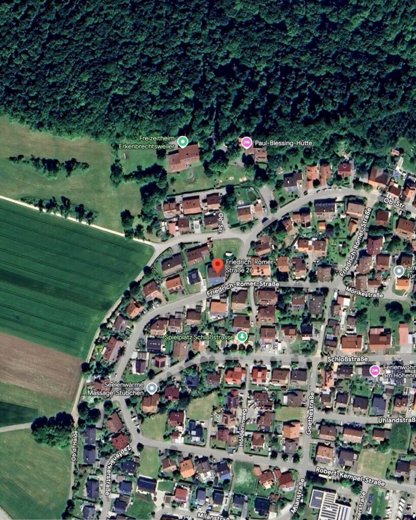 Die Immobilie befindet sich in einer ruhigen Wohnlage am Rand von Erkenbrechtsweiler – einer charmanten Gemeinde auf der Hochfläche der Schwäbischen Alb. Die Straße ist geprägt von gepflegten Wohnhäusern und wenig Durchgangsverkehr, was ein familienfreundliches und sicheres Wohnumfeld garantiert.