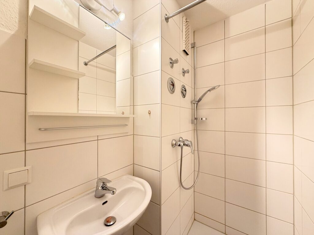 Die Wohnung bietet 1,5 Zimmer, einen hellen Flur, ein modernisiertes Duschbad und eine praktische Küchenzeile. Besonders attraktiv ist die nach außen liegende Terrasse mit eigenem Gartenanteil, perfekt zum Entspannen oder für gemütliche Stunden im Freien.