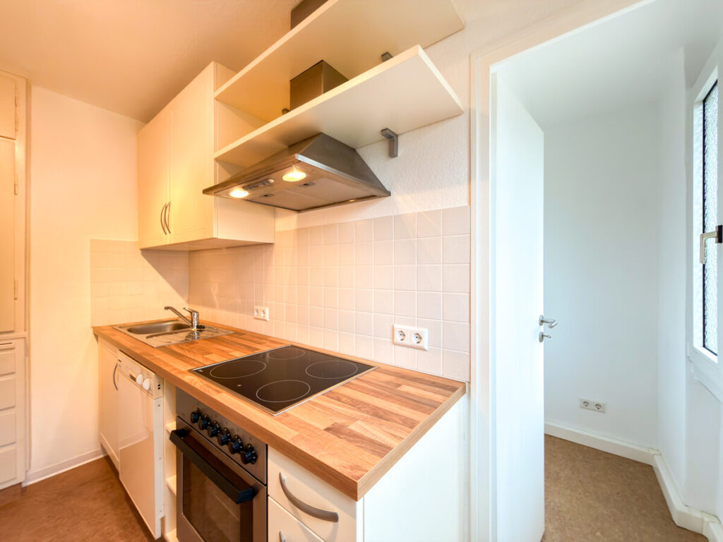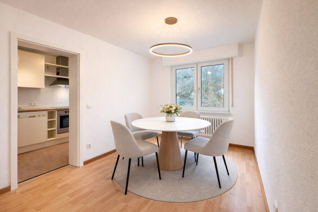 Die separate Küche ist mit einer Einbauküche ausgestattet und verfügt über eine angrenzende und praktische Speisekammer, die zusätzlichen Stauraum bietet. Direkt davor befindet sich der Essbereich, der kurze Wege garantiert und einen gemütlichen Treffpunkt für Familie und Gäste schafft.