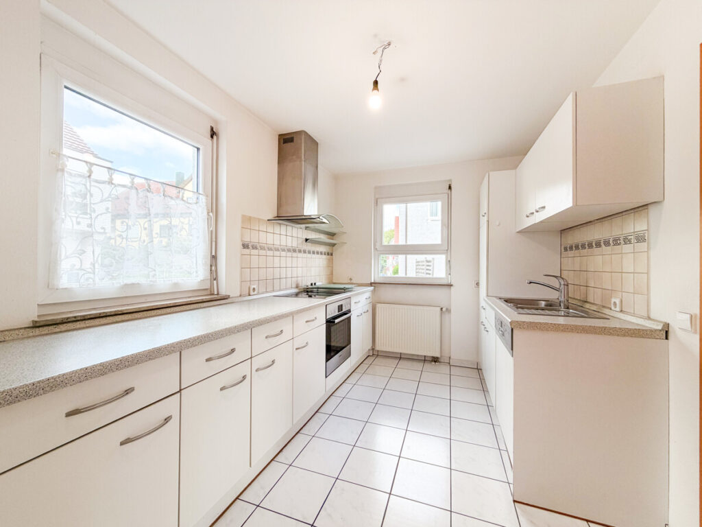 Die angrenzende, moderne Einbauküche in Weiß ist funktional ausgestattet und bietet ausreichend Platz zum Kochen und Genießen. Ein Gäste-WC und ein praktischer Abstellraum runden das Raumangebot auf dieser Ebene ab.