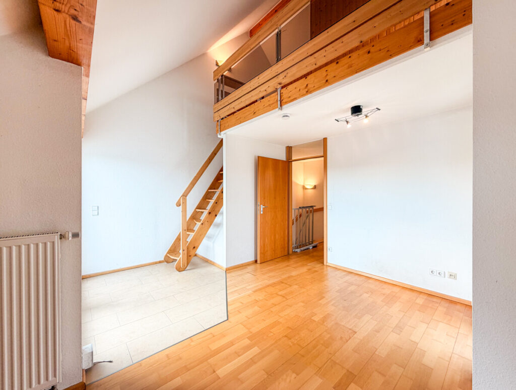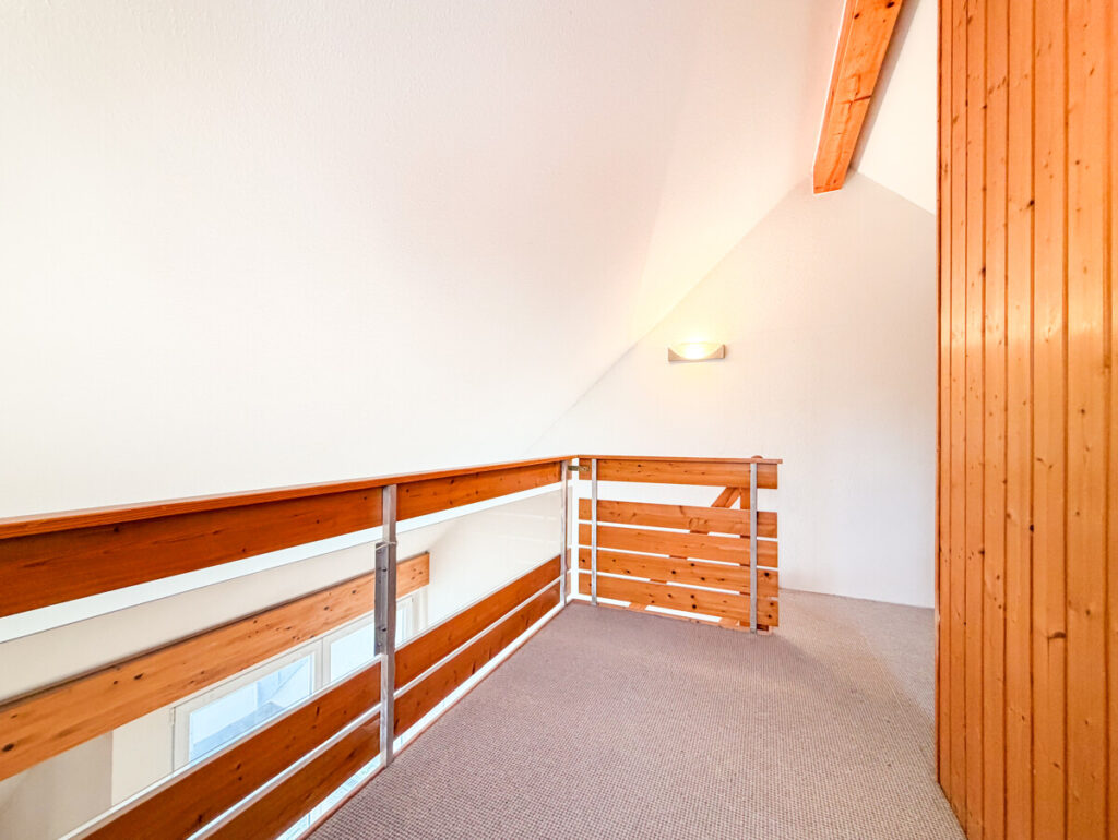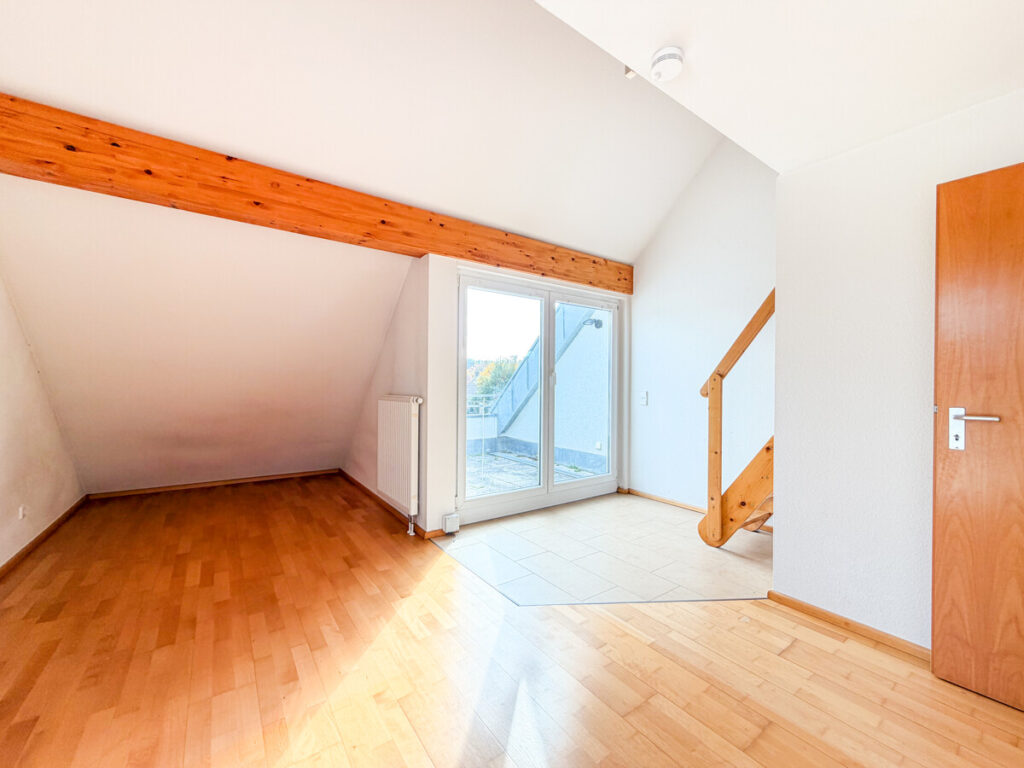 Das Dachgeschoss begeistert mit einem vielseitig nutzbaren Zimmer, das sich beispielsweise als Büro, Gästezimmer oder Studio anbietet. Von hier aus haben Sie Zugang zum charmanten Dachbalkon mit schönem Ausblick. Ein weiteres Tageslichtbad sorgt auch hier für hohen Wohnkomfort. Auf dem Dachspitz befindet sich der Technikraum mit der neuen Gaszentralheizung.