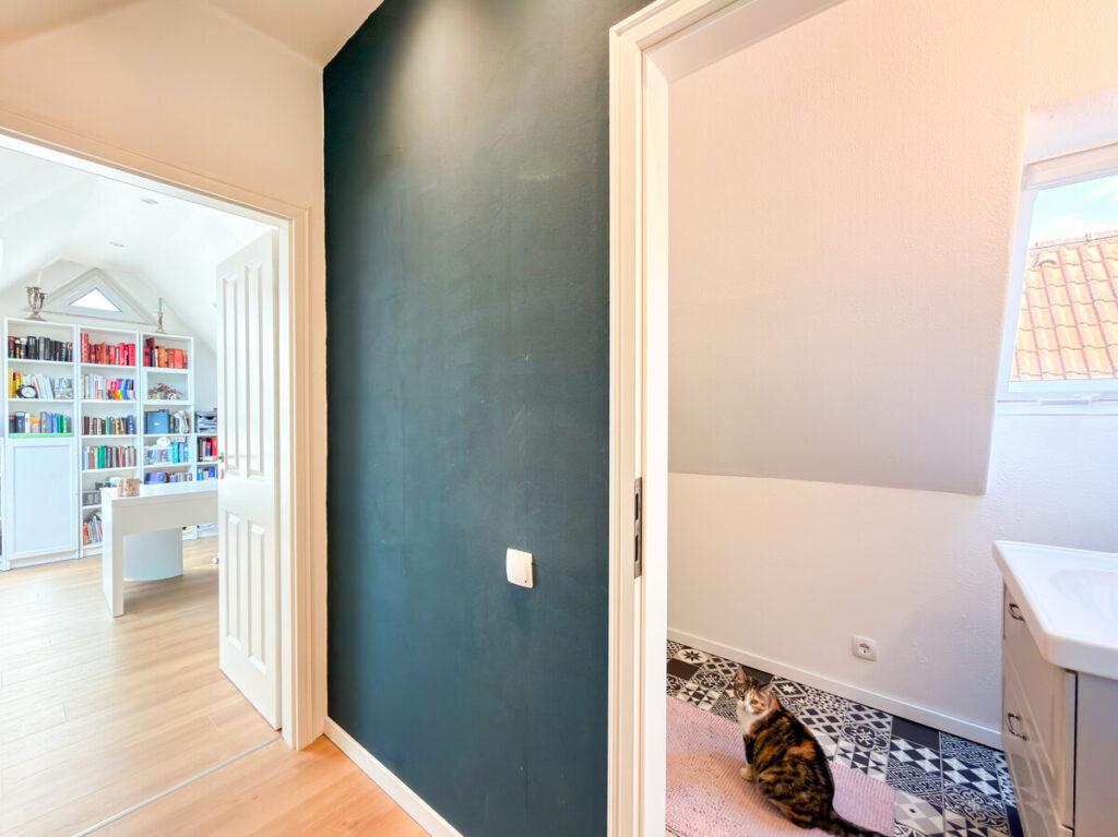 Im Durchgangsbereich befindet sich ein weiteres geschmackvoll gestaltetes WC mit Tageslicht. Anschließend folgt ein zusätzlicher Raum, der sich hervorragend als Gästezimmer, Homeoffice oder Hobbyraum nutzen lässt.