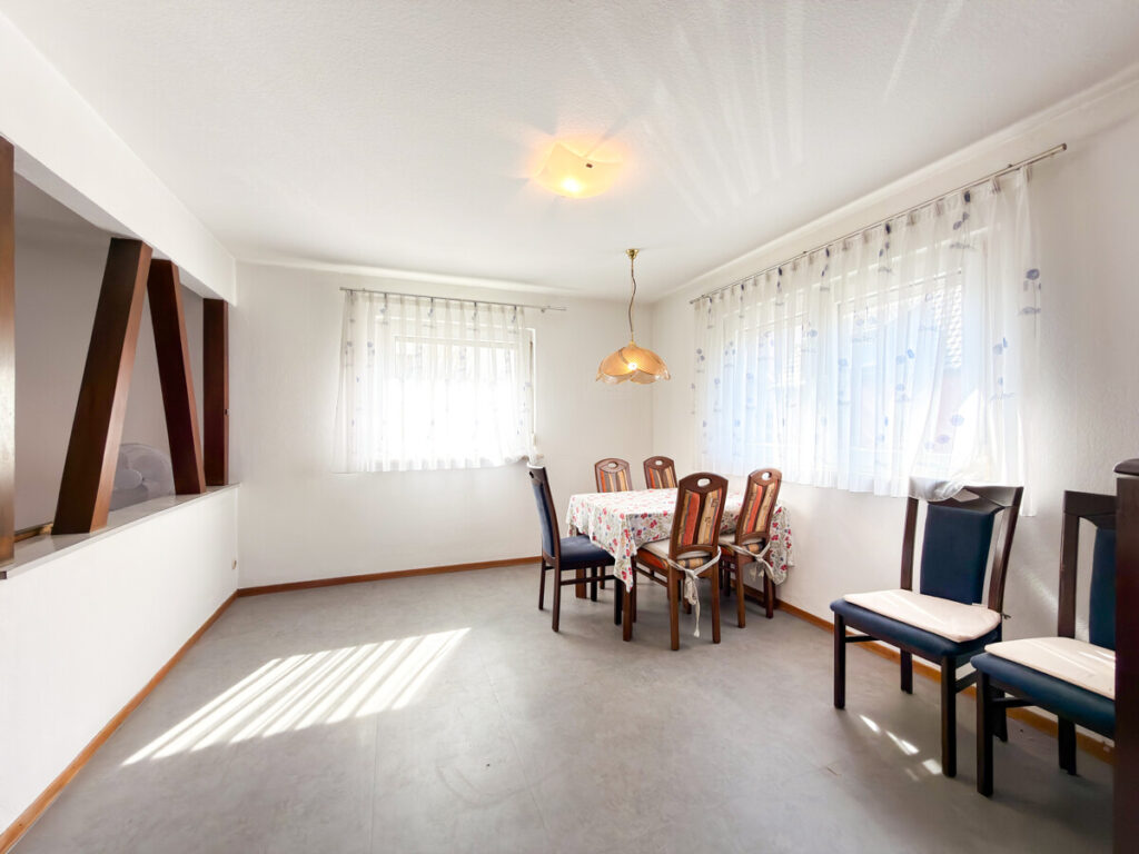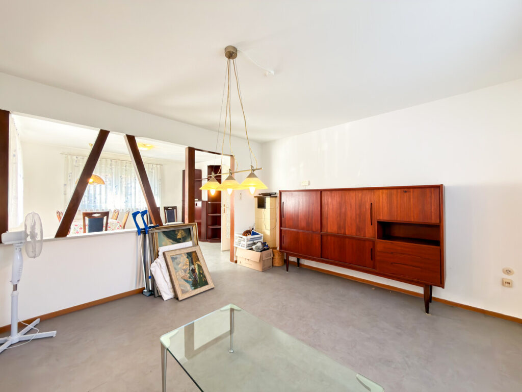Dieses charmante Haus bietet eine solide Basis für alle, die sich den Traum vom eigenen Zuhause nach individuellen Vorstellungen verwirklichen möchten. Mit seinem durchdachten Grundriss und den vorhandenen Raumstrukturen eröffnet die Immobilie vielfältige Gestaltungsmöglichkeiten und Erweiterungspotential – benötigt jedoch eine umfassende Renovierung, um ihr volles Potenzial zu entfalten. Beim Betreten des Hauses empfängt Sie ein zentraler Flurbereich mit Platz für eine Garderobe. Linker Hand befindet sich die Küche – die vorhandene Einbauküche ist nicht Bestandteil des Verkaufs und bietet somit die Möglichkeit zur freien Neugestaltung nach eigenen Wünschen. Im weiteren Verlauf gelangen Sie in den Wohn- und Essbereich, der durch seine offene Struktur überzeugt. Sichtbare Holzbalken verleihen dem Raum eine besondere, warme Atmosphäre und schaffen eine angenehme Wohnqualität. Auch dieser Bereich bietet viel Spielraum für eine moderne Neuinterpretation. Auf dieser Ebene steht zudem ein Tageslicht-Gäste-WC zur Verfügung. Über eine Holztreppe erreichen Sie das Obergeschoss. Hier befindet sich ein großzügiges Tageslichtbad, ausgestattet mit einer großen Dusche und einem Waschtisch. Das WC ist separat angeordnet. Das Schlafzimmer kann individuell gestaltet werden, während ein vorgelagerter Raum ideal als Ankleide oder Homeoffice genutzt werden kann. Eine sehr steile Holztreppe führt auf die Bühne, die zusätzliche Abstellfläche bietet. Im Untergeschoss stehen Ihnen ein Kellerbereich mit vielfältigen Nutzungsmöglichkeiten, eine Waschküche sowie der Technikraum zur Verfügung. Ein Stellplatz direkt vor dem Haus rundet dieses Angebot ab. Fazit: Ein Haus mit Charakter und Entwicklungspotenzial – ideal für Käufer, die eine Immobilie nach eigenen Vorstellungen modernisieren und gestalten möchten. —–Das 333 m² große Grundstück weist mit einer GRZ von 0,25 eine zulässige überbaubare Grundfläche von ca. 83 m² auf. Das vorhandene Baufenster wird derzeit nicht vollständig ausgeschöpft, sodass zusätzliche bauliche Möglichkeiten denkbar wären. Insbesondere erscheint ein Anbau oder eine Erweiterung des bestehenden Gebäudes innerhalb der planungsrechtlichen Vorgaben denkbar. Entsprechende Vorhaben sind jedoch im Vorfeld mit dem zuständigen Bauamt abzustimmen. Dadurch bietet das Grundstück attraktives Entwicklungspotenzial für individuelle Wohnraumerweiterungen——