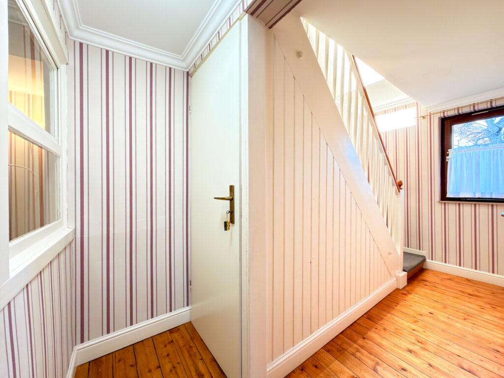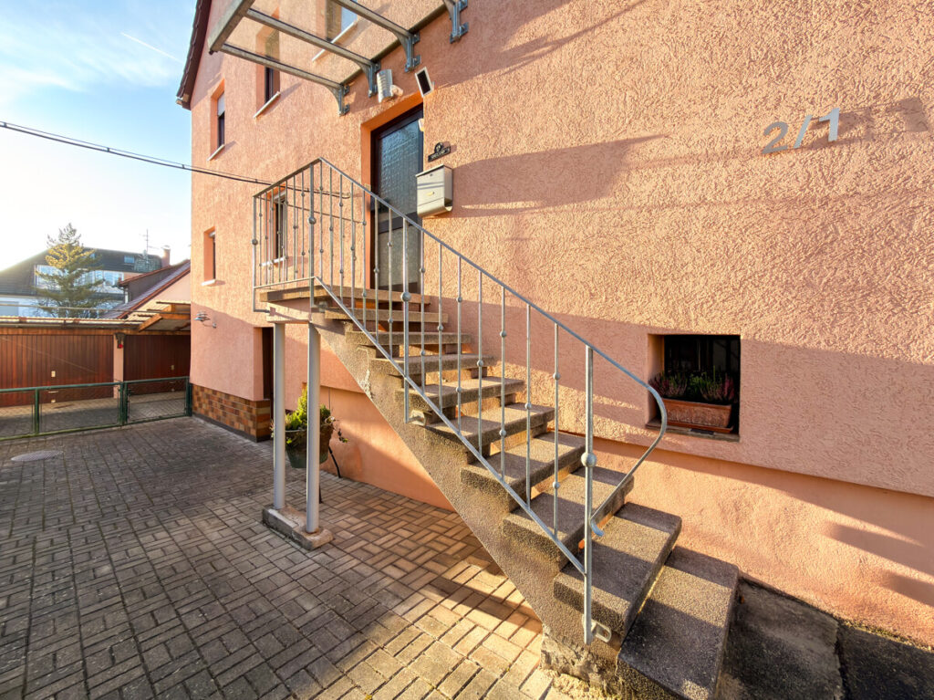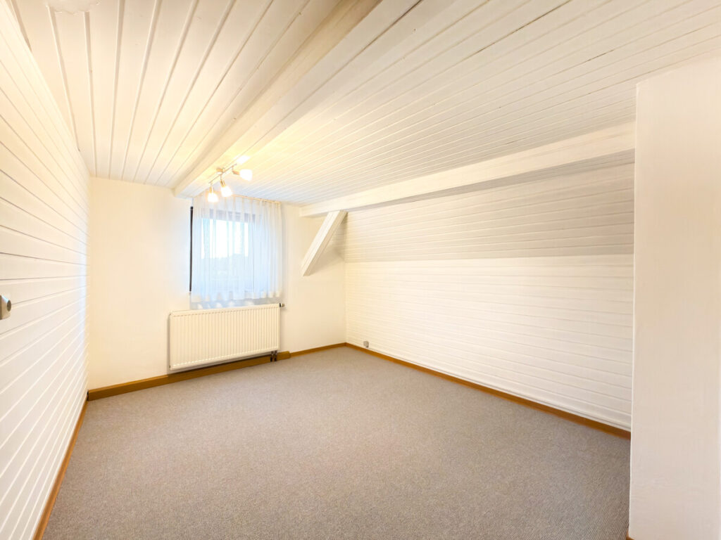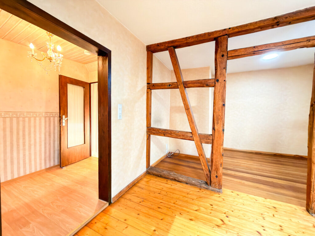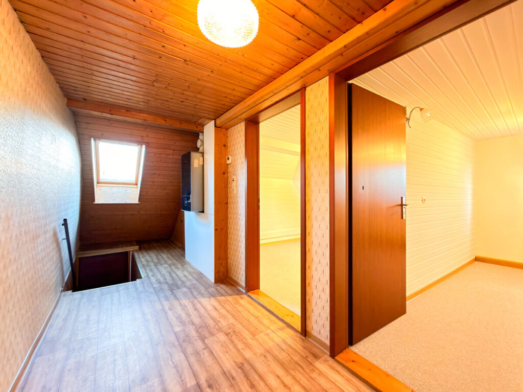Diese charmante Doppelhaushälfte, ursprünglich als Bauernhaus errichtet, verbindet heute historischen Charakter mit vielseitigen Nutzungsmöglichkeiten und bietet ein gemütliches Zuhause für die ganze Familie. Der besondere Charme des Hauses zeigt sich in zahlreichen liebevollen Details und der durchdachten Raumaufteilung über mehrere Ebenen. Der Zugang zum Wohnbereich erfolgt über einige Stufen in das erste Obergeschoss, wo sich der Eingangsbereich befindet. Empfangen werden Sie von einer gemütlichen Diele mit angrenzendem offenen Essbereich, der durch sichtbare Holzbalken als stilvolle, optische Raumtrennung vom Eingangsbereich abgesetzt ist und dem Raum eine warme, einladende Atmosphäre verleiht. Auf der linken Seite befindet sich der Wohnbereich mit einem angrenzenden weiteren Zimmer, das sich flexibel als Arbeits-, Gäste- oder Spielzimmer nutzen lässt. Ebenfalls auf dieser Etage liegen die Küche sowie ein Gäste-WC. Im oberen Stockwerk befinden sich weitere Zimmer, die sich ideal als Schlaf-, Kinder- oder Arbeitszimmer eignen. Zusätzlich ist hier eine zweite Küche vorhanden, die mit geringem Aufwand wieder zu einem vollwertigen Wohn- oder Schlafzimmer umgebaut werden kann – perfekt für individuelle Wohnkonzepte oder Mehrgenerationennutzung. Ganz oben bietet die Bühne eine großzügige Fläche mit Ausbaupotenzial. Hier lässt sich bei Bedarf weiterer Wohnraum schaffen, beispielsweise ein Atelier, Studio oder zusätzlicher Rückzugsbereich. Das Erdgeschoss beherbergt die Kellerräume sowie einen schönen Hobbyraum mit separatem Nebeneingang und direktem Zugang zur Terrasse. Dieser Raum ist vielseitig nutzbar und kann beispielsweise als Hobby- oder Gästezimmer, Büro oder auch als integrierte Gartenküche gestaltet werden. Angrenzend befindet sich die Waschküche. Die Deckenhöhe im 1.Obergeschoss ist – dem historischen Alter des Hauses entsprechend – etwas niedriger als in den übrigen Wohnräumen und unterstreicht den ursprünglichen Charakter des Gebäudes. Hinter dem Haus stehen den Bewohnern zwei Garagen zur Verfügung. Ergänzt wird das Außenangebot durch eine überdachte Terrasse, eine weitere Terrasse sowie ein angrenzendes kleines Gärtchen neben der Garage – ideale Rückzugsorte zum Entspannen, Gärtnern oder für gesellige Stunden im Freien. Insgesamt bietet diese Doppelhaushälfte eine besondere Kombination aus Geschichte, Gemütlichkeit und Entwicklungspotenzial – ideal für Familien oder Käufer, die das Besondere suchen und Raum für individuelle Gestaltung schätzen.