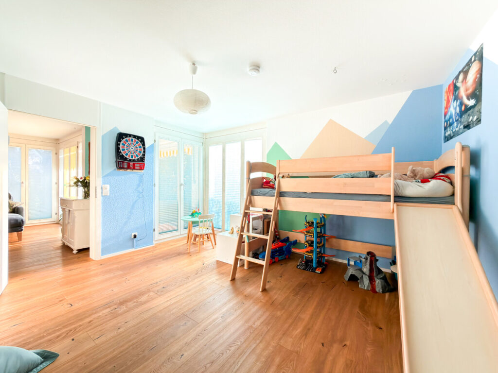 Der ursprünglich als Hobbyraum geplante Bereich wurde wohnwirtschaftlich ausgebaut und mit einer komfortablen Fußbodenheizung sowie einem großen Fenster ausgestattet. Der Raum bietet dadurch angenehme Wohnqualität und vielseitige Nutzungsmöglichkeiten. Ein Abstellraum innerhalb der Wohnung bietet zusätzlichen Stauraum.