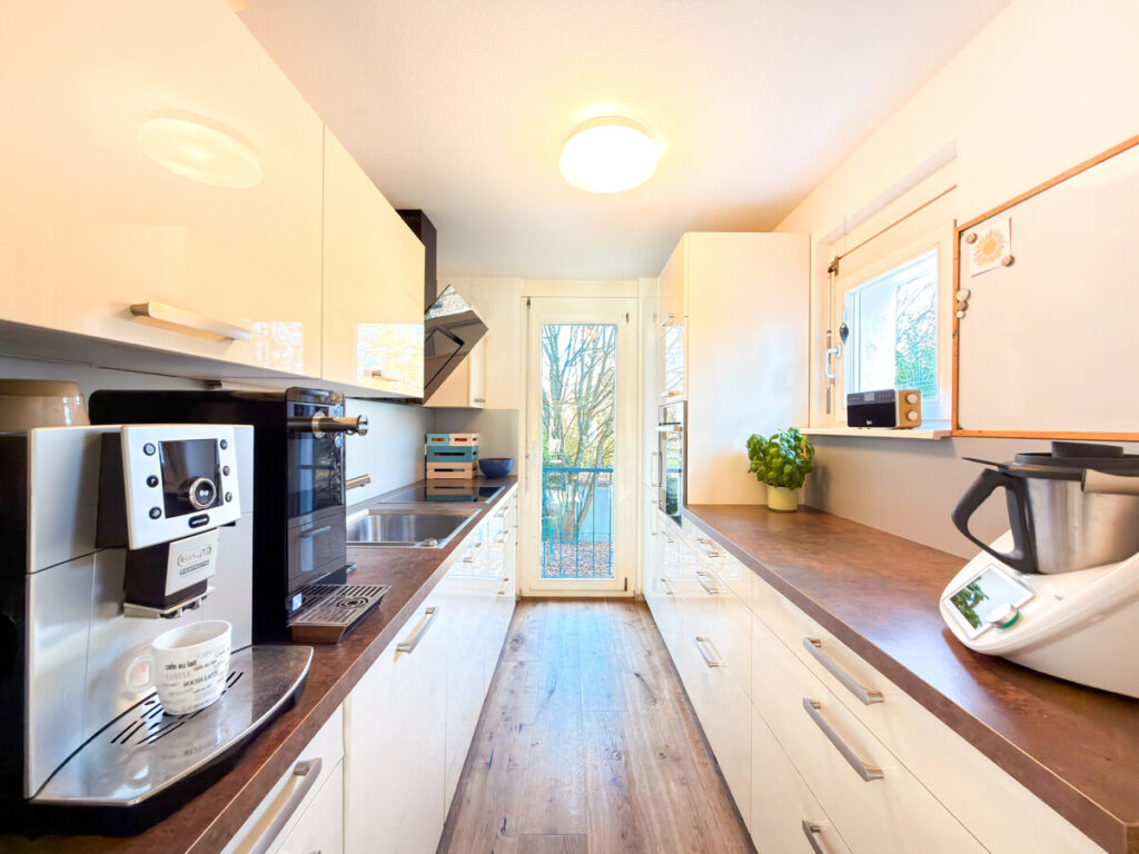 Angrenzend befindet sich die separate Küche, ausgestattet mit einer hellen Einbauküche, die bereits im Kaufpreis enthalten ist.