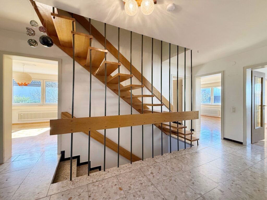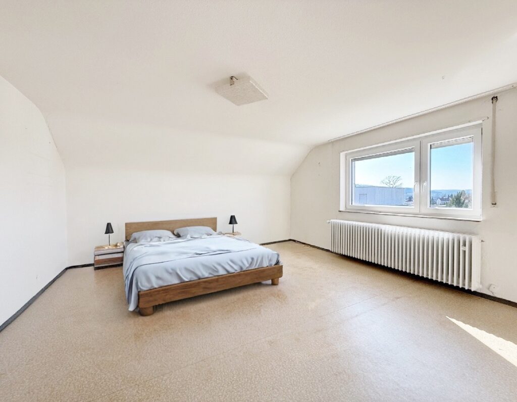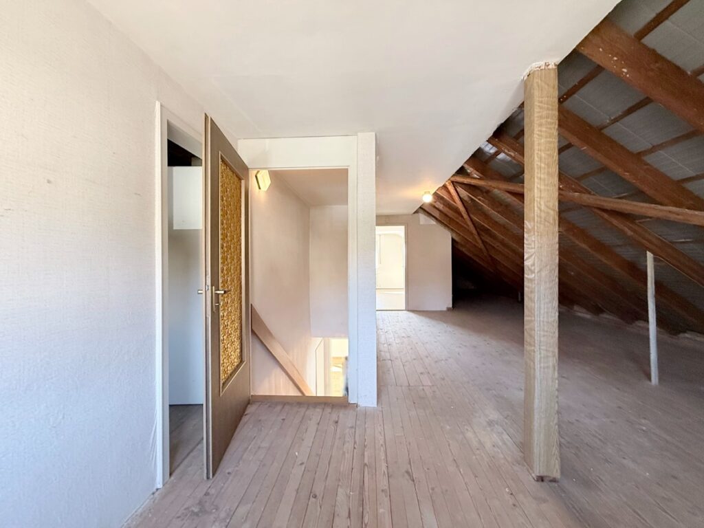 Über eine schöne Holztreppe gelangen Sie in das Dachgeschoss, wo sich ein großzügiges Zimmer befindet, das sich vielseitig nutzen lässt. Zusätzlich besteht hier Ausbaupotenzial für weiteren Wohnraum.