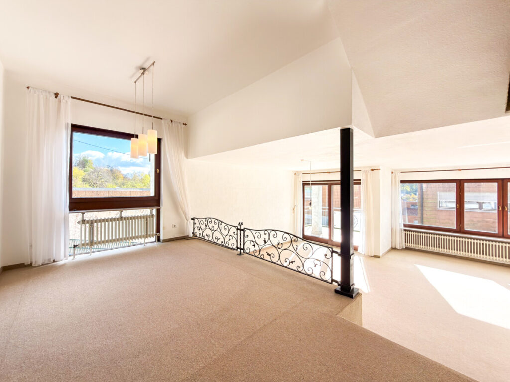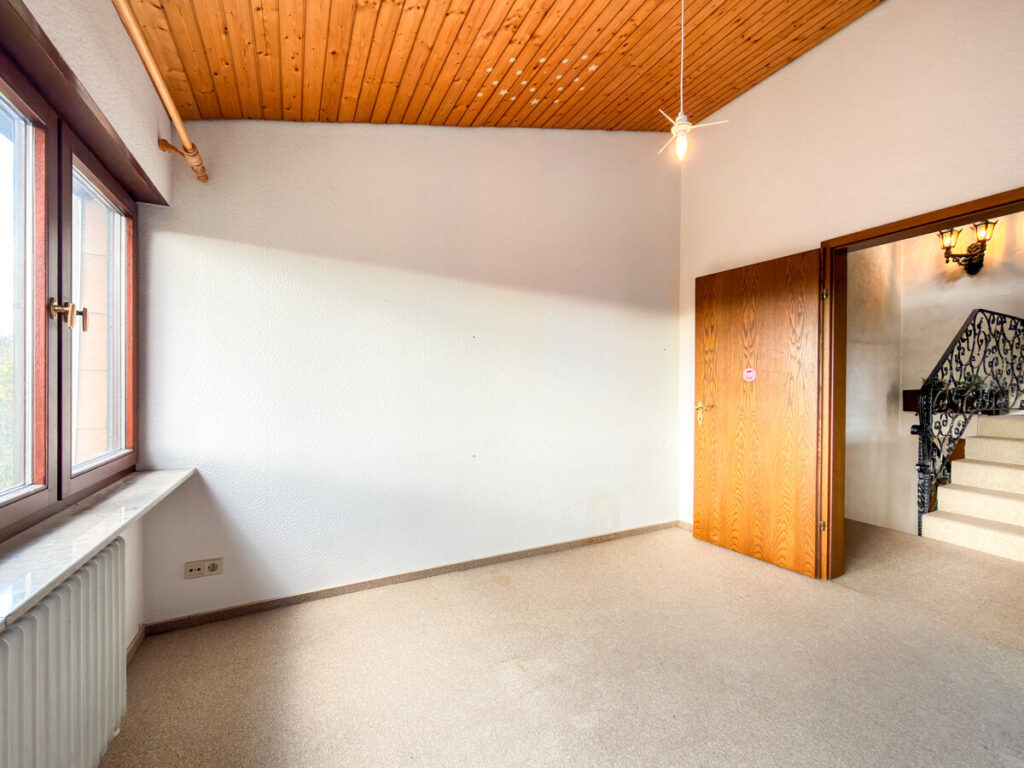 Im Obergeschoss befinden sich zwei gut geschnittene Zimmer, die sich ideal als Kinder-, Gäste- oder Arbeitszimmer eignen – beide mit Zugang zu einem kleinen Balkon. Über einige weitere Stufen gelangen Sie ins Dachgeschoss, wo ein großzügiges Schlafzimmer mit angrenzendem Tageslichtbad auf Sie wartet. Das Tageslichtbad ist mit Badewanne, Doppelwaschbecken und WC ausgestattet.