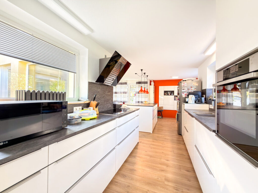 Alle Wohnräume sind mit einem hochwertigen Designboden in Parkettoptik ausgestattet, der eine warme und einladende Atmosphäre schafft. Im Untergeschoss befindet sich der Hauswirtschaftsraum mit Waschmaschinenanschluss.