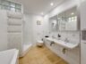 Eine elegante Holztreppe führt Sie in das Dachgeschoss, wo zwei großzügige Zimmer sowie ein geschmackvolles Badezimmer auf Sie warten. Das Badezimmer überzeugt mit einer neuen Dusche, Badewanne, Handtuchheizkörper, zwei Waschtischen und einem WC. Das geräumige Schlafzimmer mit seinen Einbaumöbeln bietet Zugang zu einem weiteren Balkon, von dem aus Sie einen wunderschönen Ausblick genießen können. Das zweite Zimmer auf dieser Ebene eignet sich hervorragend als Kinder-, Gäste- oder Arbeitszimmer. Die hohen Räume verleihen den beiden Räumen einen ganz besonderen Flair.