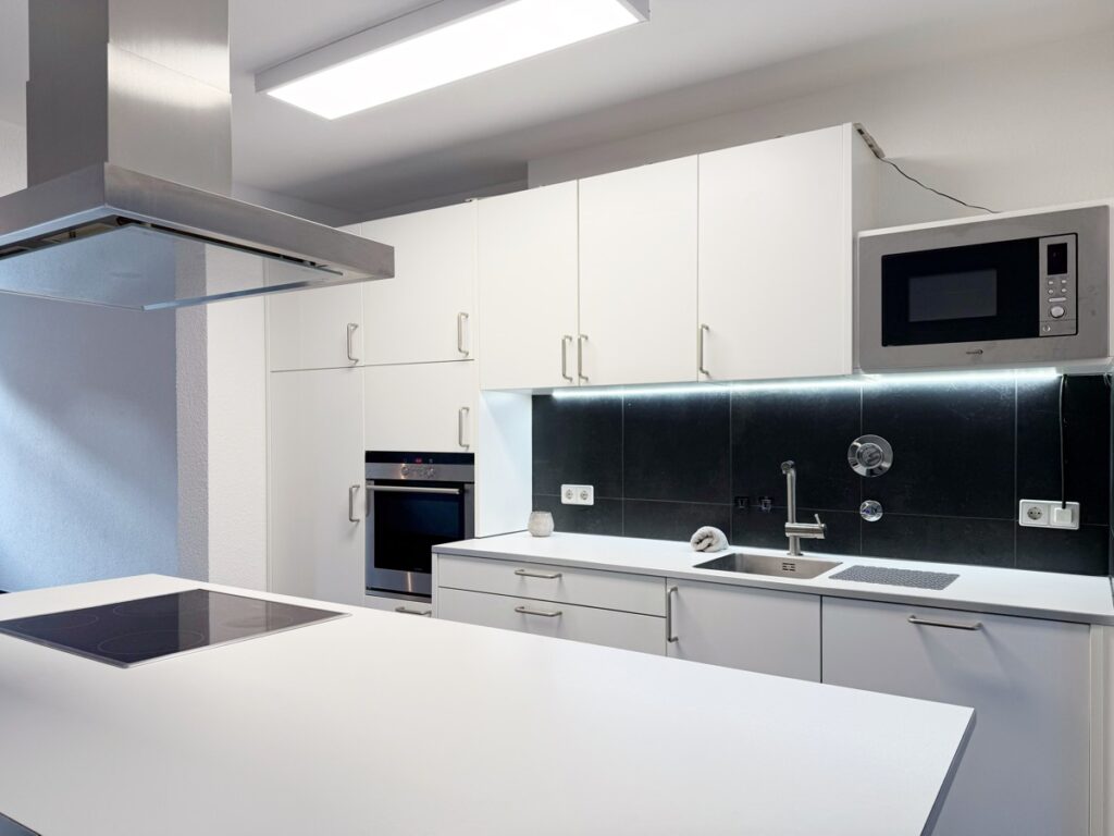 Über das charmante Treppenhaus gelangen Sie in die Wohnung, wo Sie ein großzügiger Wohn- und Essbereich mit offener Küche empfängt. Die hochwertige bulthaup-Markenküche mit Kochinsel und gemütlichem Tresen ist bereits im Kaufpreis enthalten und überzeugt mit modernem, zeitlosem Design. Der angrenzende, überdachte Balkon mit Nordostausrichtung lädt dazu ein, den Tag entspannt ausklingen zu lassen. Ergänzt wird die Ebene durch einen praktischen Abstellraum sowie ein modernes, tagesbelichtetes Gäste-WC.