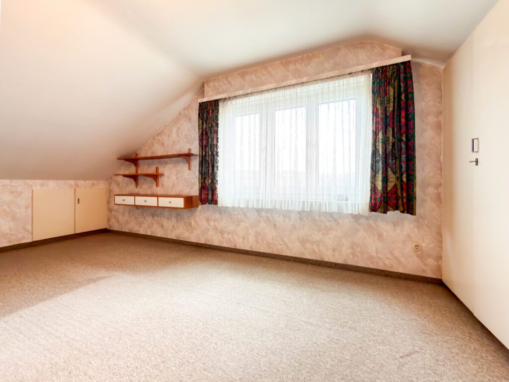 Dachgeschoss: Hier stehen bereits 3 wohnwirtschaftlich ausgebaute Räume zur Verfügung. Das Dachgeschoss umfasst einen großen Raum mit Blick in den Garten, einen weiteren großen Raum mit Einbauschränken und schöner Aussicht sowie einen kleineren Raum sowie ein WC.